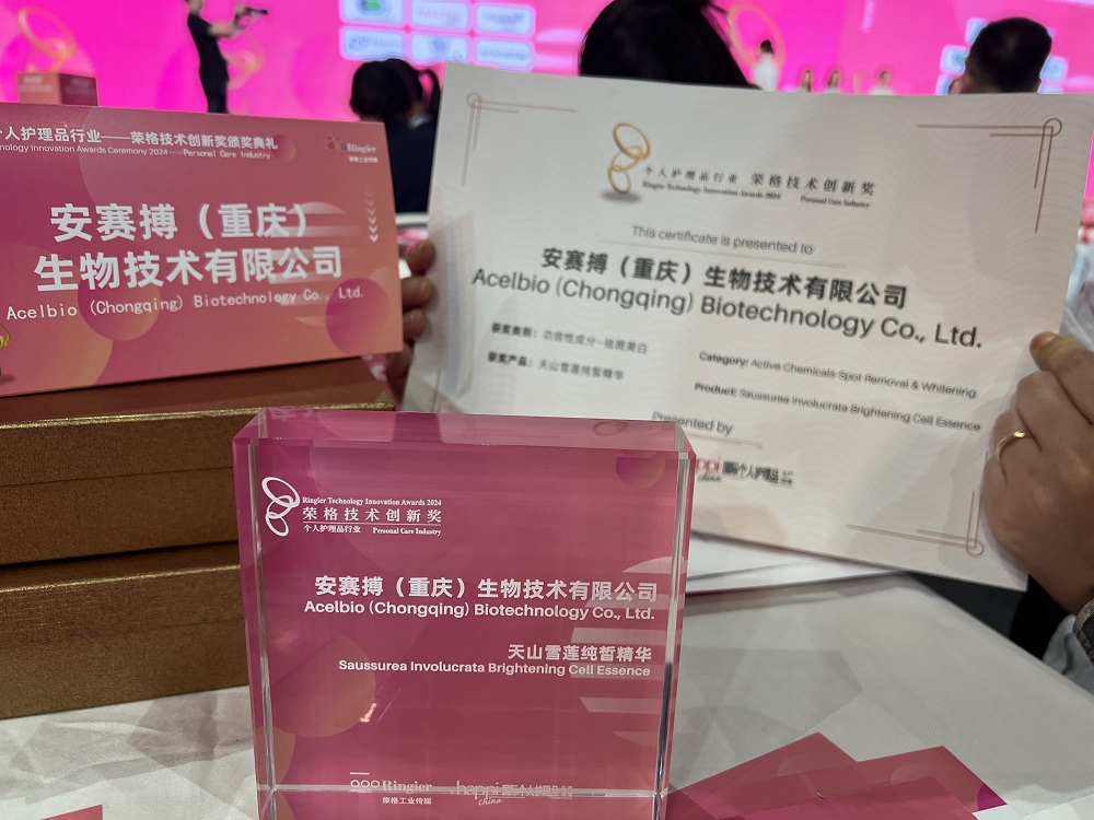 安赛搏(重庆)生物技术有限公司,作为植物细胞原料领域的佼佼者,凭借其在细胞培养技术上的深厚积累与创新突破,于2024年个人护理品行业荣格技术创新奖评选中大放异彩。我们的两款产品——天山雪莲纯皙精华与海茴香焕活细胞精华,均荣获了这一行业权威奖项。