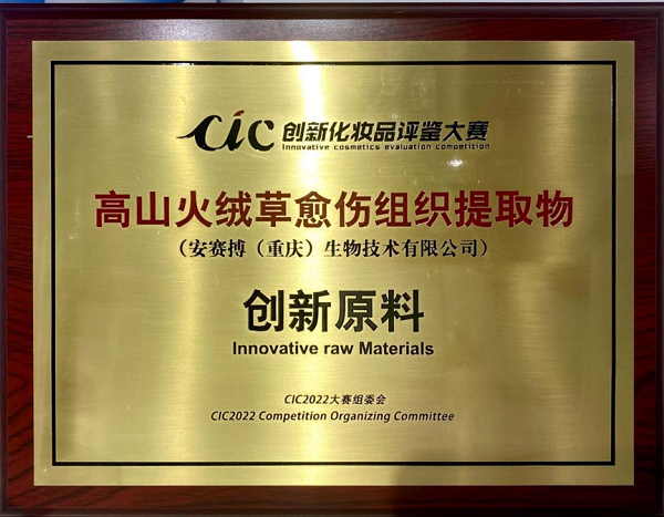 安赛搏高山火绒草原料获得Cic创新化妆品评鉴大赛“高山火绒草愈伤组织提取物创新原料”。