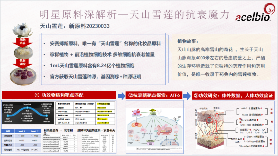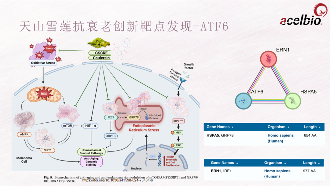 除研究如何提升植物细胞的活性物质,安赛搏还不断探索和挖掘天山雪莲物质的潜在新靶点,如发掘了与抗衰相关的新靶点:ATF6。